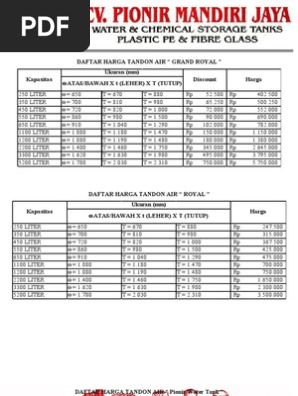 Qwku 0mtcd53tm from hargadepo.com Fungsi tangki air adalah untuk menampung air baku maupun air product hasil olahan filter atau mesin filter ro. Inilah jenis tandon air dan harga tandon air beserta panduan dalam memilih tandon air terbaik untuk rumah anda. Misalkan saja seperti tandon air merk pinguin stainless dan plastik, tangki air merk profil tank, toren air merk tirta, dan masih banyak lagi yang lainnya. Harga toren air aztank, harga toren air penguin dan harga toren air pennyu yang terbaru 2015 diinformasikan. Dibuat dari bahan dasar plastik polyethylene yang bisa didaur ulang. Tandon air penguin berbagai ukuran dan tipe. Seperti toren air 200 liter, 300 liter, 500 liter, hingga 1000 liter. Ada beberapa macam ukuran diameter tangki / tandon air di pasaran untuk keperluan penggunaan rumah tangga antara lain kapasitas ukuran 225 liter, 300 liter, 520 liter, 650.